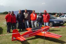 V sobotu se sešlo celkem 16 pilotů, hlavně přijel Dan Hrachovec (tedy s rodiči – pochopitelně), to byl ten druhý náš reprezentant. Píši reprezentant, i když neoficiální, ale přece jen naši vlast tak trochu reprezentujeme a to již několik let, možná by se mohl SMČR trochu zamyslet. EAC však není oficiální kategorií FAI, tak vlastně SMČR nezajímá. Po brífinku se začalo soutěžit a odlétalo se několik kol sestav. Od rána postupně začalo foukat a vítr během dne sílil a sílil. V pozdním odpoledni se podle mne létalo na hranici regulí, chvílemi za nepříjemného mrholení a zima byla, ani nemluvě. I pro 3-metrovky to foukalo tak, že během figur je vítr odnášel z pomyslné dráhy letu kam chtěl. Ale jinak jsou kluci vylétaní, neviděl jsem nikoho, kdo by měl jediný problém při přistání, což mimochodem mého kolegu docela fascinovalo. Večer jsme se přesunuli do blízkého, částečně rekonstruovaného statku, kde proběhl obvyklý banket s živou muzikou a večeří. A zase téměř tři čtvrtě hodiny na hotel – to se opravdu nepovedlo.