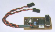 Do přepínače jsem ještě zaintegroval nabíjecí konektor. Používám souosý o průměru 5,5/2,5mm. Tento konektor, spolu se stejně vysokým vypínačem SW-1, slouží též k mechanickému upevnění desky plošných spojů - obvykle do boku letadla. Krátký tenčí spoj k nabíjecímu konektoru by měl fungovat jako pojistka, při případném zkratování baterie nabíjecím kabelem, nebo při přepólování nabíječe (zatím v praxi nevyzkoušeno). U mechanického přepínače SW-1 lze drátovou spojkou přehodit logiku směru zapnuto-vypnuto podle zvyku a způsobu zastavění do modelu. Konektor J1 pro připojení baterie je zapojený symetricky, s + pólem uprostřed. Výstup pro přijímač je připájeným kablíkem se servokonektorem. Aby se pájený spoj neuklepal, je kablík fixován v délce asi 2cm smršťovací bužírkou a připevněn tavným lepidlem k desce plošných spojů.